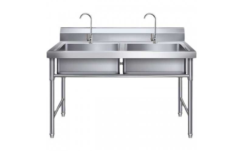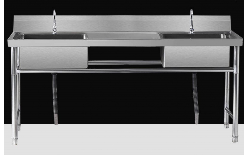商用不銹鋼水槽廚房水池單槽雙槽洗碗洗菜盆洗手盆帶平臺 雙池中